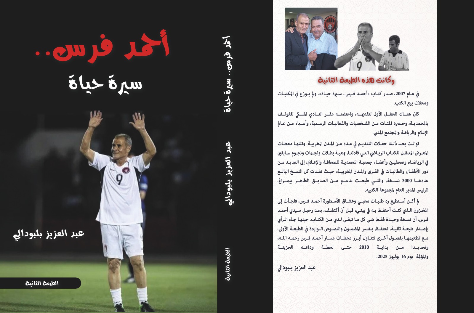 قدم كتاب أحمد فرس..سيرة حياة في طبعته الثانية لمؤلفه الكاتب الصحفي عزيز بلبودالي، وذلك في حفل أقامته مؤسسة محمد السادس للأبطال الرياضيين، بشراكة مع جمعية الرياضة والصداقة، أمس الجمعة بمدينة المحمدية، تأبينياً مؤثراً في ذكرى أربعينية الراحل أحمد فرس، أيقونة كرة القدم الوطنية وأول مغربي يتوج بالكرة الذهبية الإفريقية